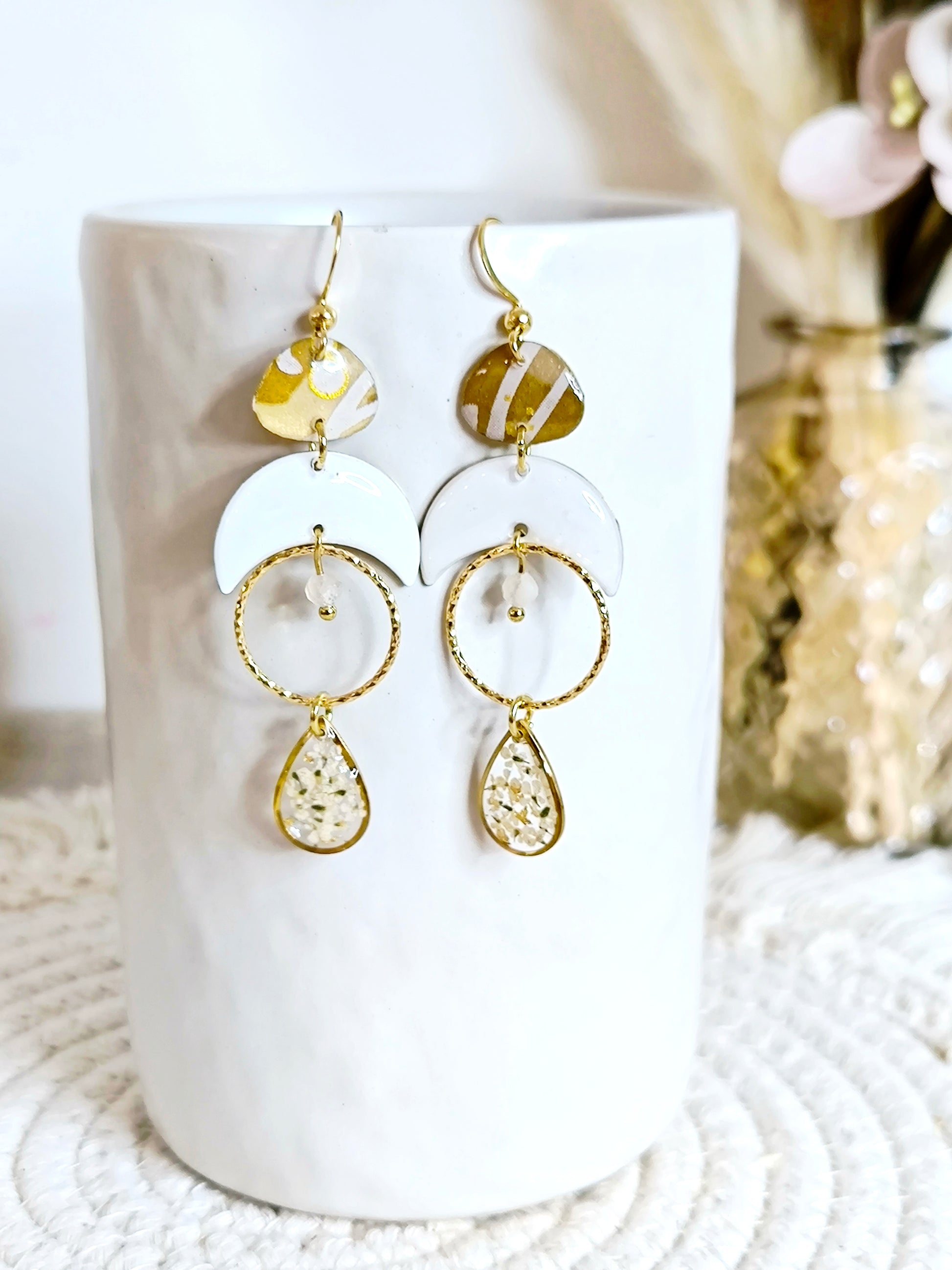 Boucles d'oreilles fleuries résine et émail : Croissant de lune : Or