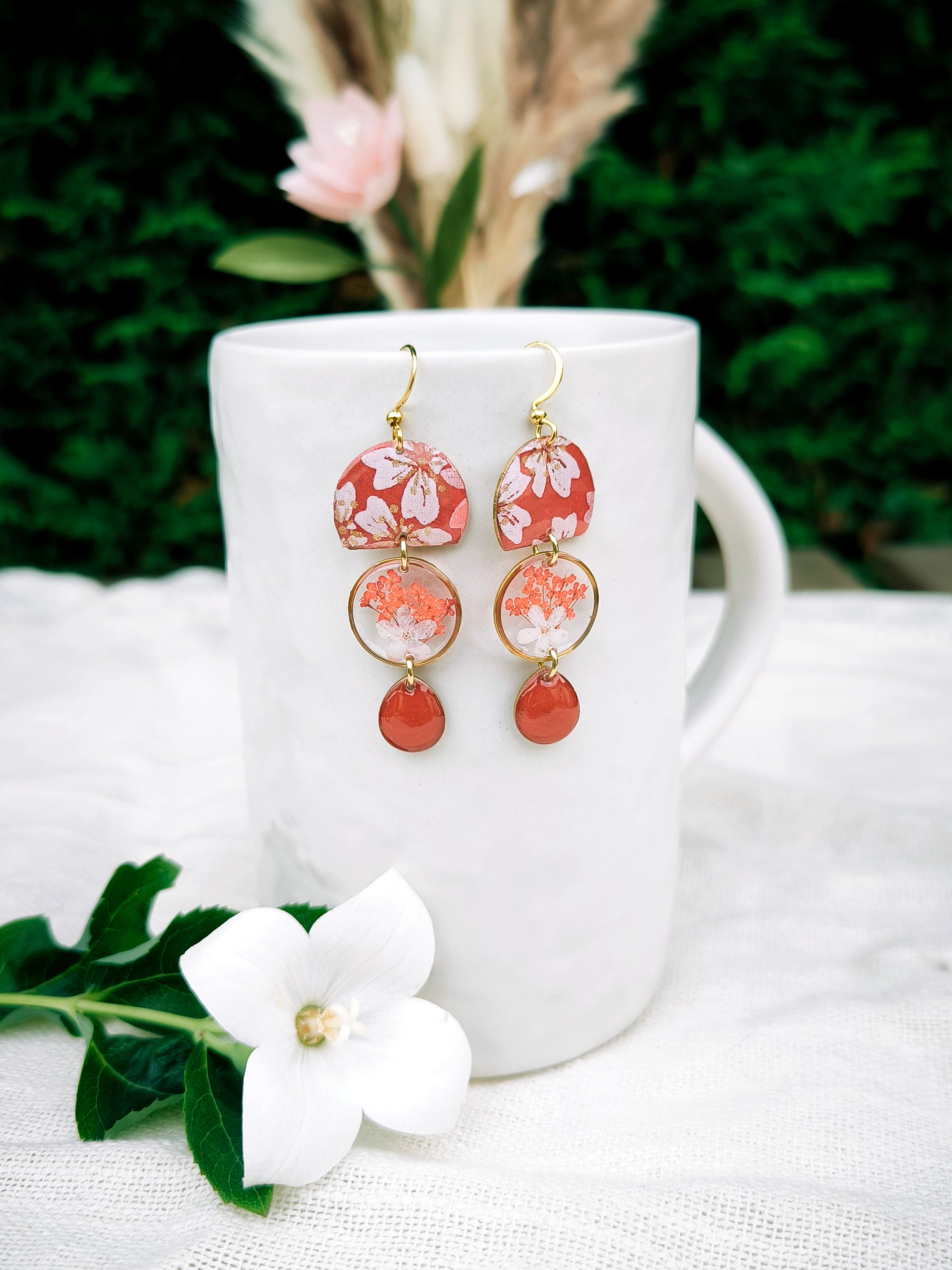 Boucles d'oreilles fleuries résine et émail : Médusa : Rouge