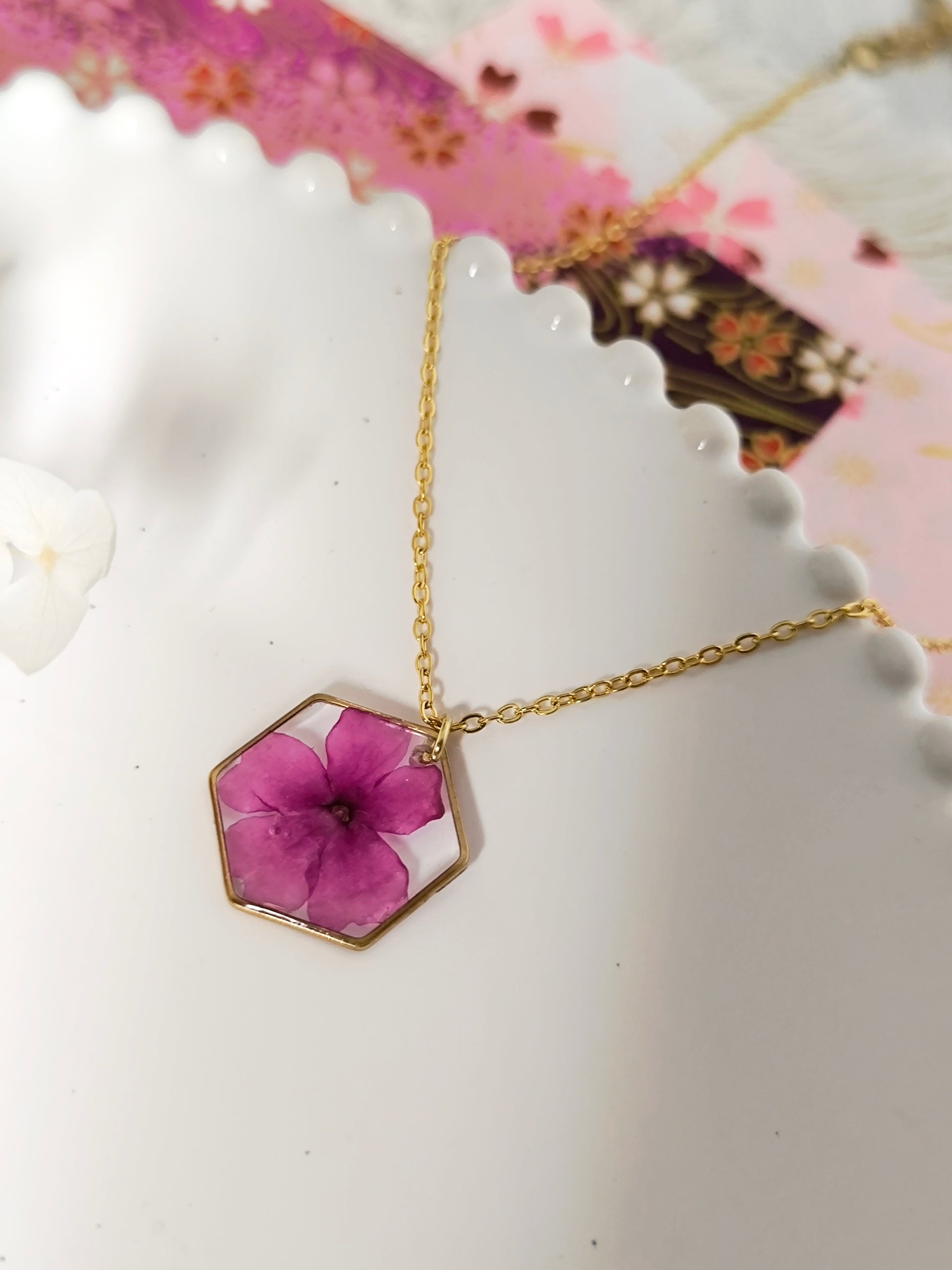 - Véritables fleurs : Je n'utilise que de véritables fleurs pressées et séchées naturellement, délicatement conservées dans une résine non toxique.